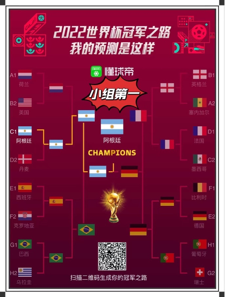 个人预测,法国会小组赛翻车,阿根廷会一路打进决赛,决赛是阿根廷对阵英格兰,但是场面极度保守,但是阿根廷会在加时赛由天使打入一球1:0战胜英格兰获得世界杯冠军。