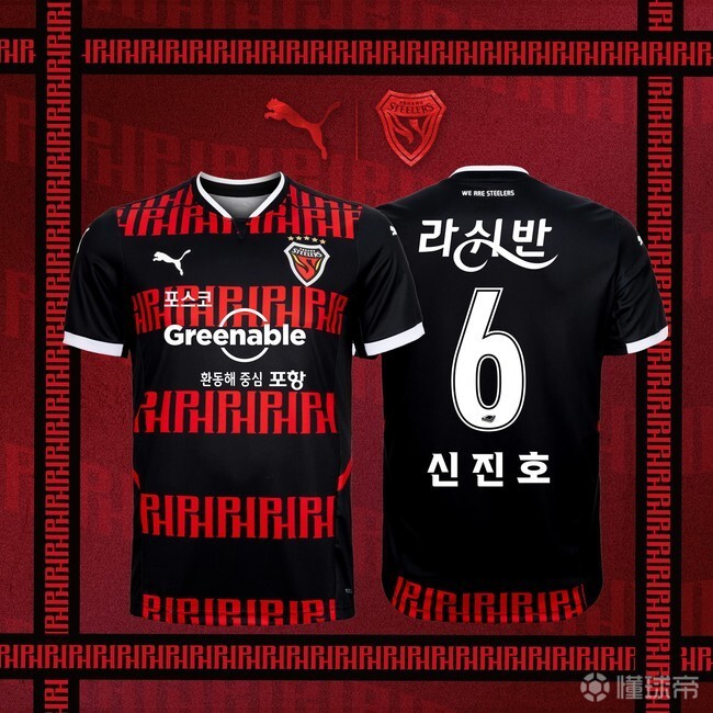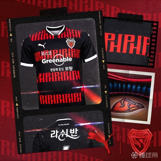 扫描下载懂球帝首页>动态> 懂球号> K联赛球队浦项铁人发布第三球衣,正面有浦项(PO...