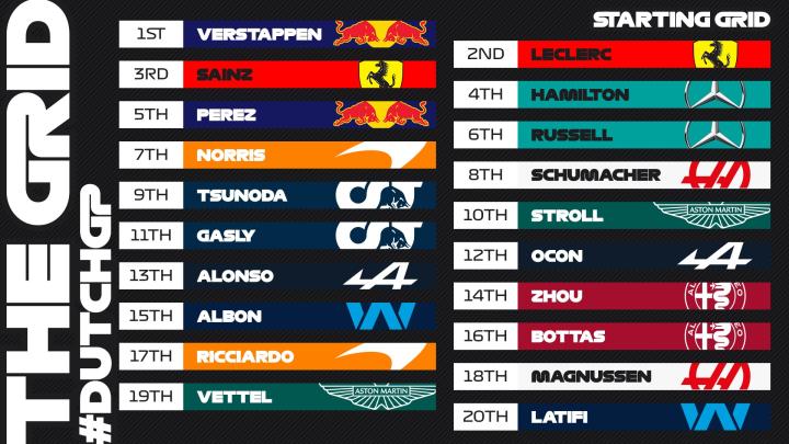 在昨天进行的排位赛中,主场作战的维斯塔潘在最后时刻力压勒克莱尔夺得杆位。而佩雷兹则是在排位赛最后阶段引发黄旗,最终排在第五。维斯塔潘身后将会是法拉利的两名车手。梅奔的汉密尔顿和拉塞尔分列第四和第六。中国车手周冠宇在排位赛中表现还是不错的,他在Q1中力压队友博塔斯晋级Q2,最终获得第14名。赛前,红牛车队为佩雷兹更换上了一套旧引擎,似乎是在为下周做准备。赛前,阿尔法-罗密欧也为周冠宇进行了一些参数上的调校。