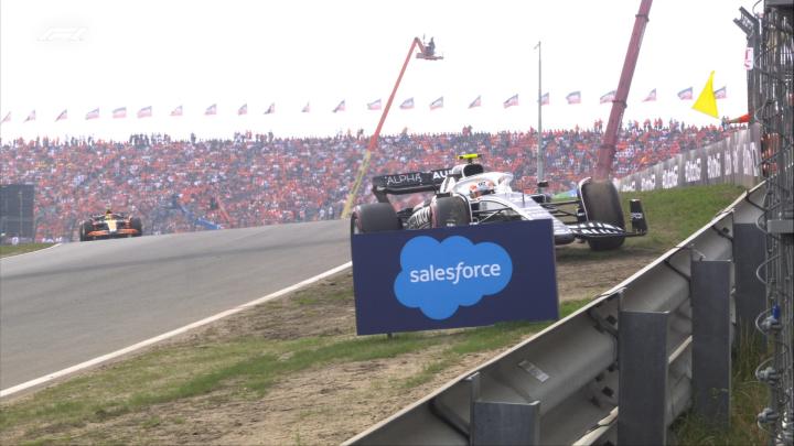 角田最终也选择进站,车队帮他上紧安全带并更换了红胎。但在出站后,角田再度表示赛车有问题,并直接将车停在路边。赛会出示虚拟安全车。