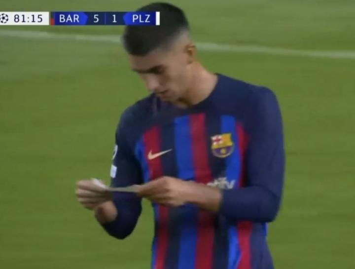 扫描下载懂球帝首页>动态> 巴勃罗-托雷完成巴萨生涯首秀,登场时给费兰带了张小纸条