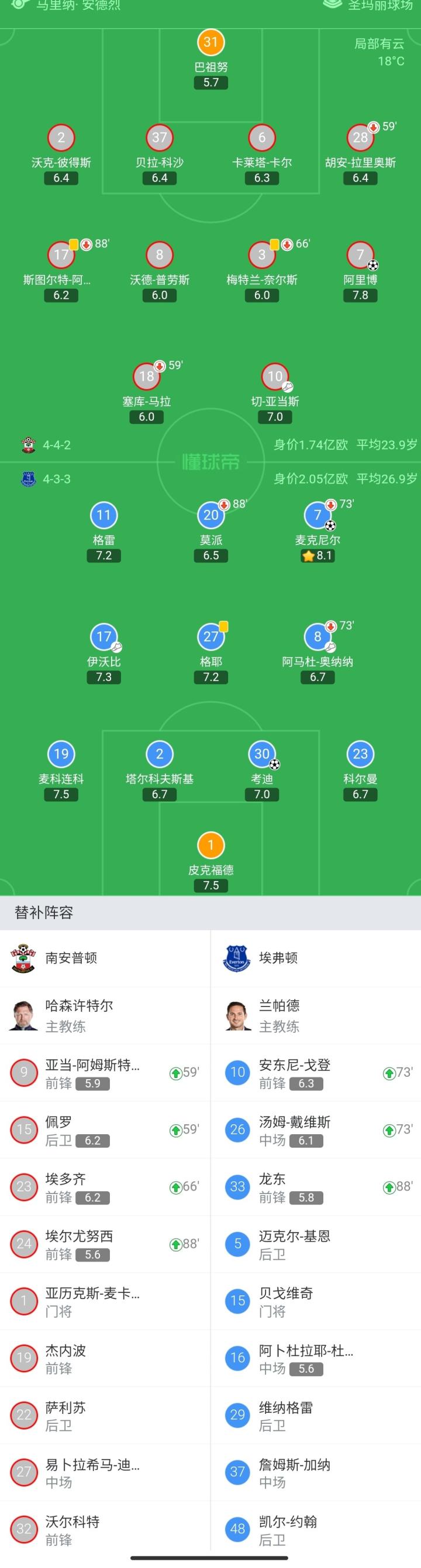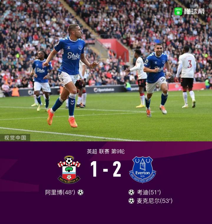 扫描下载懂球帝首页>动态> 埃弗顿客场2-1逆转圣徒取得联赛两连胜,考迪、麦克尼尔破门