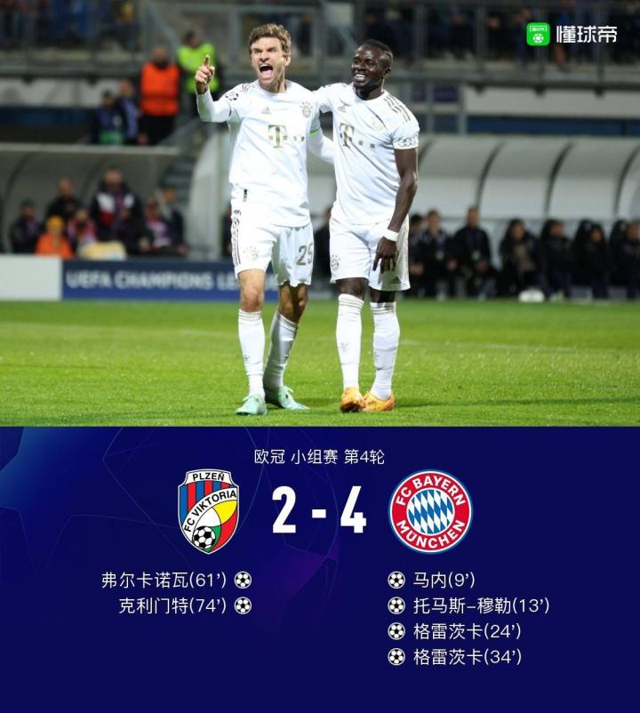 扫描下载懂球帝首页>动态> 拜仁4-2比尔森胜利提前出线+创纪录,磁卡2射1传马内穆勒建功