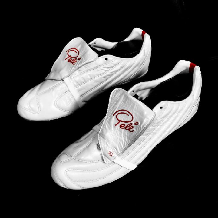 下面向我们走来的是1970 MS,代表PELE出场。澳大利亚本土最有名的足球鞋品牌其实是Nomis,创始人是阿迪达斯研发足球鞋的元老西蒙(Simon),著名的猎鹰就出自此人之手,但是他却极其反感猎鹰的摩擦条设计,2005年,他自立门户,在澳大利亚创建了Nomis,代言人是科威尔。由于Nomis球鞋本身产量不大,外加使用的材料成本又高,销量不是很理想,2010年,Nomis公司最终宣告破产,据说后来被一家和贝利(就是你想的那个贝利)关系挺好的美国资本收购,在澳大利亚继续使用Pele为品牌制作足球鞋,但是换汤不换药,技术还是Nomis的技术。
