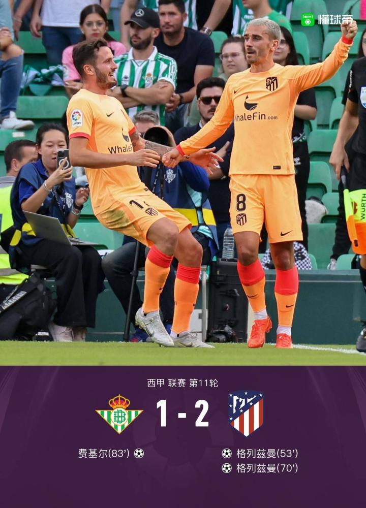 扫描下载懂球帝首页>动态> 马竞客场2-1贝蒂斯,格列兹曼梅开二度,费基尔任意球破门