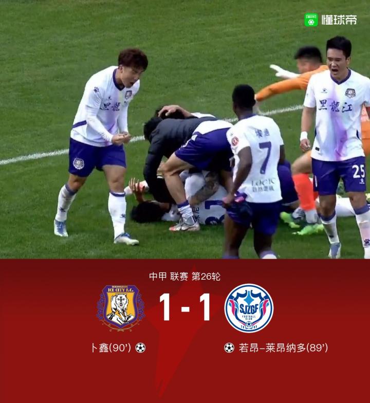 扫描下载懂球帝首页>动态> 最后时刻两球,黑龙江1-1石家庄,莱昂纳多破门,卜鑫绝平