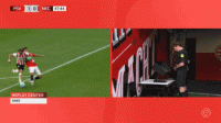 下半场刚开始不久,哈维-西蒙斯制造点球,吕克-德容一蹴而就,埃因霍温2-0领先。