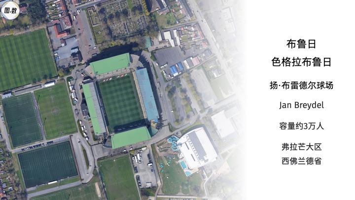 奥斯坦德以东20公里外的布鲁日是西佛兰德省省城,它并不沿海,但通过博杜安运河与滨海布鲁日相通,城内的布鲁日和色格拉布鲁日共用扬·布雷德尔球场。