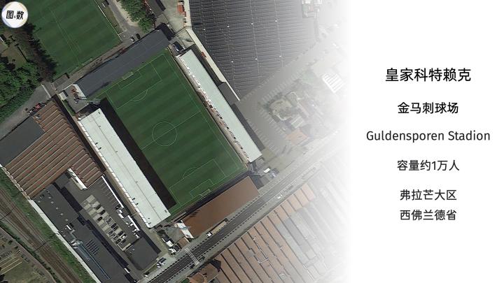 皇家科特赖克的主场是金马刺球场,因为前文所提及的金马刺之战就发生在科特赖克附近,金马刺之名是因为佛兰德斯人在此战缴获了数百件法国骑士的金质马刺(Golden Spurs)。