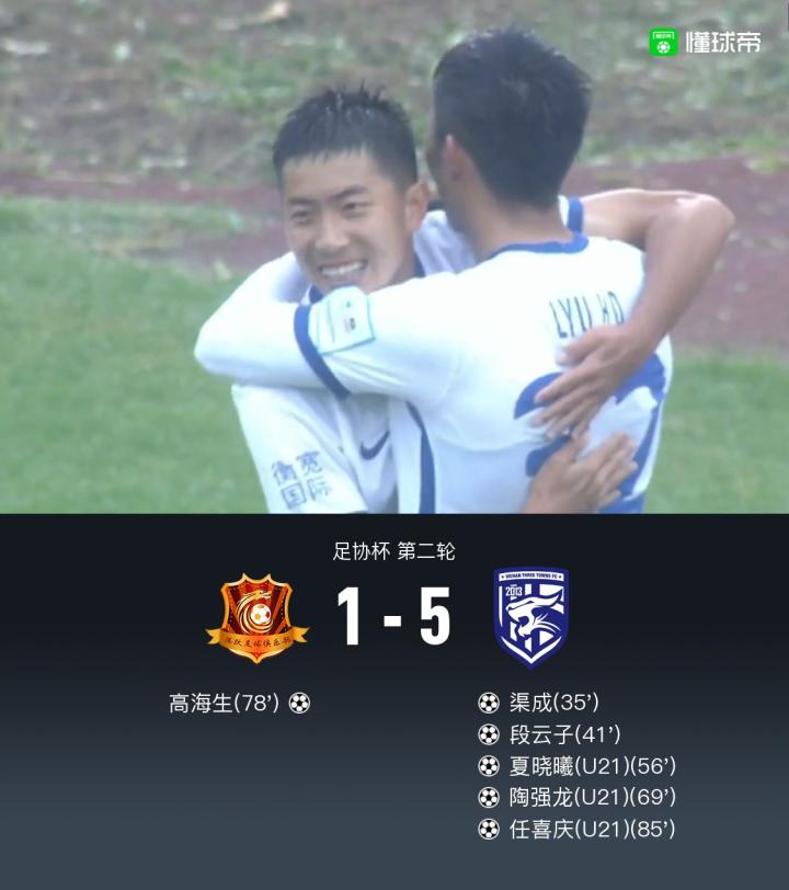 北京时间11月17日14:00,足协杯第二轮,丹东腾跃对阵武汉三镇。上半场,高海生推射被扑,刘斌吊射打偏,熊飞伤退,渠成打破僵局,邓卓翔抽射被扑出,段云子头球建功。下半场,陶强龙、夏晓曦传射,高海生扳回一分,任喜庆推射建功,最终,三镇5-1丹东腾跃。