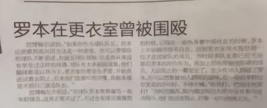 而文章又分为了几个小标题,算是层层递进。其中罗本在更衣室曾被围殴讲述的是,罗本在荷兰更衣室经常以大师兄自称,欺负小球员,有一次遭到了十多人的围殴,在一旁的亨特拉尔拍手叫好,并大喊:给我打,给我往死里打!