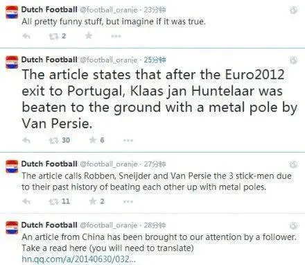 荷兰三棍客的故事看似结束,却又没有结束,几乎每一次世界杯,这样的话题,以及其中的段子,都会被拿出来调侃。也每次都有人一脸真诚或恍然大悟的感叹:这些都是真的吗,原来荷兰队这么乱啊!