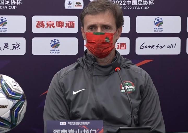 北京时间12月17日,在足协杯八分之一决赛与上海申花队的赛前,河南嵩山龙门队助理教练奥古斯丁与队员韩东出席了赛前新闻发布会。
