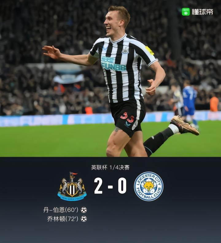 扫描下载懂球帝首页>动态> 英联杯纽卡2-0莱斯特城晋级四强,乔林顿传射,丹-伯恩首球