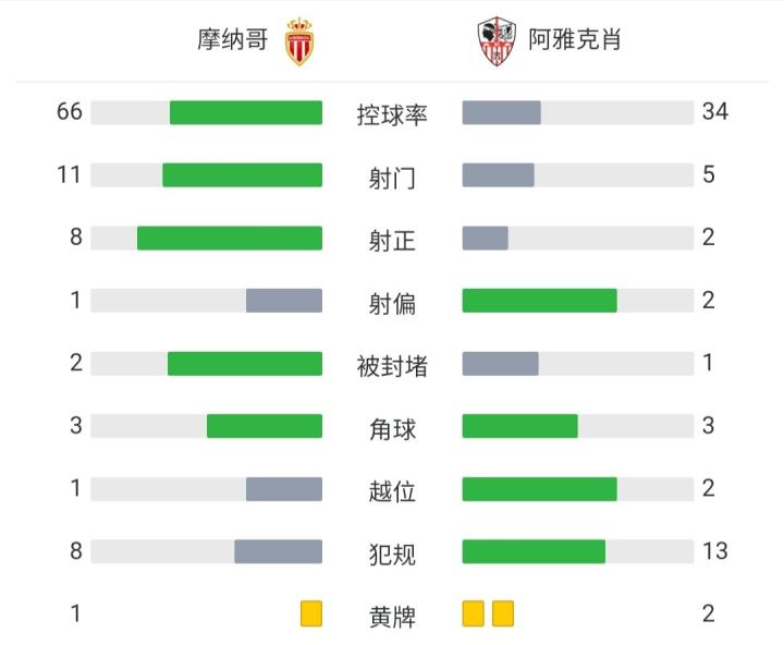 第21分钟,本耶德尔内切低射破门,摩纳哥3-1阿雅克肖!