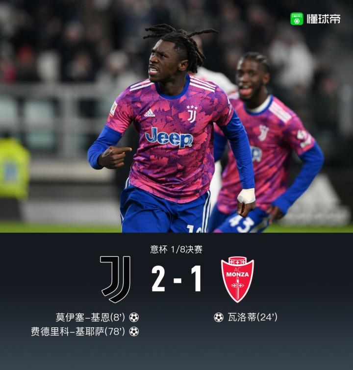 扫描下载懂球帝首页>动态> 意杯尤文2-1蒙扎晋级八强,基耶萨单骑闯关制胜,基恩破门
