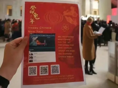 一群在伦敦及周围的留学生,自发组织了起来,他们身穿汉服,拿着精心准备的介绍中国春节的宣传单,来到大英博物馆,耐心的向游客普及中国的春节知识,讲授春节习俗和美好和故事。