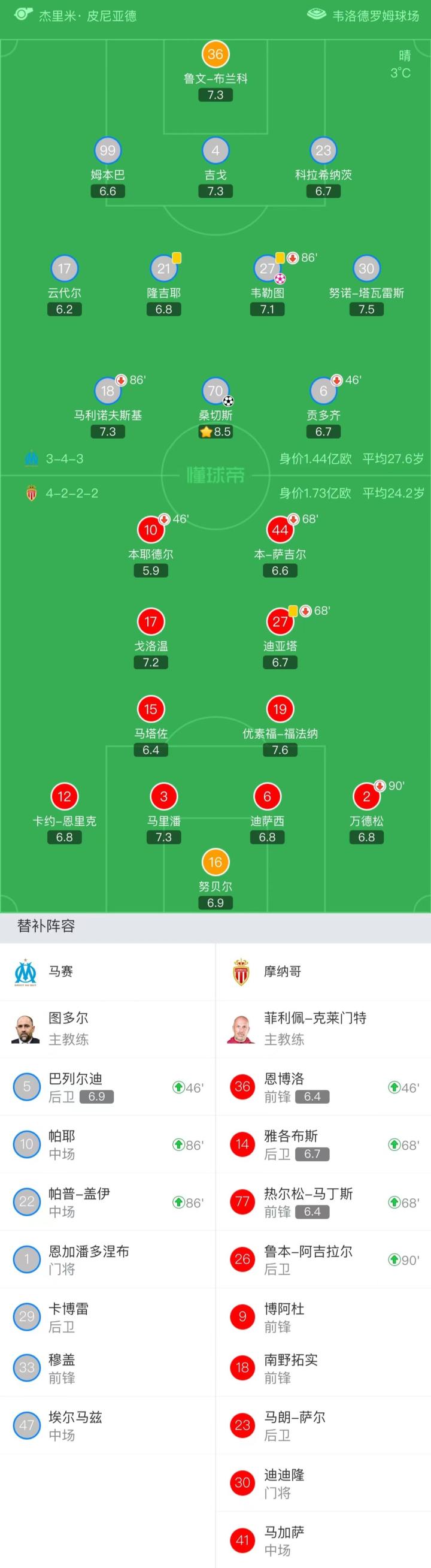 这只摩纳哥在客场对阵强队的惯用套路就是上半场的踢法,适时高压逼抢加蹲坑等反击。这是合理利用了马赛主场必须全力进攻的心态。这也是目前很本爷的一场比赛,强强对话输出有限但依旧是全队不可缺少的一员(防反战术核心)。那几次错失机会也是正常现象,被换下也是正常轮换。