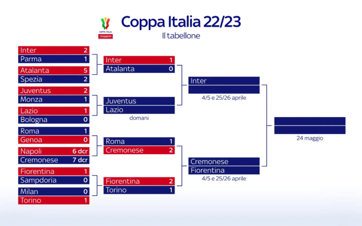 这也是佛罗伦萨7年来首次连续两个赛季闯进意大利杯四强,也是佛罗伦萨近5个赛季以来第三次晋级意杯四强。之前两次分别被阿特兰大(总比分4:5)和尤文图斯(总比分0:3)淘汰,此次紫百合能否冲进决赛?