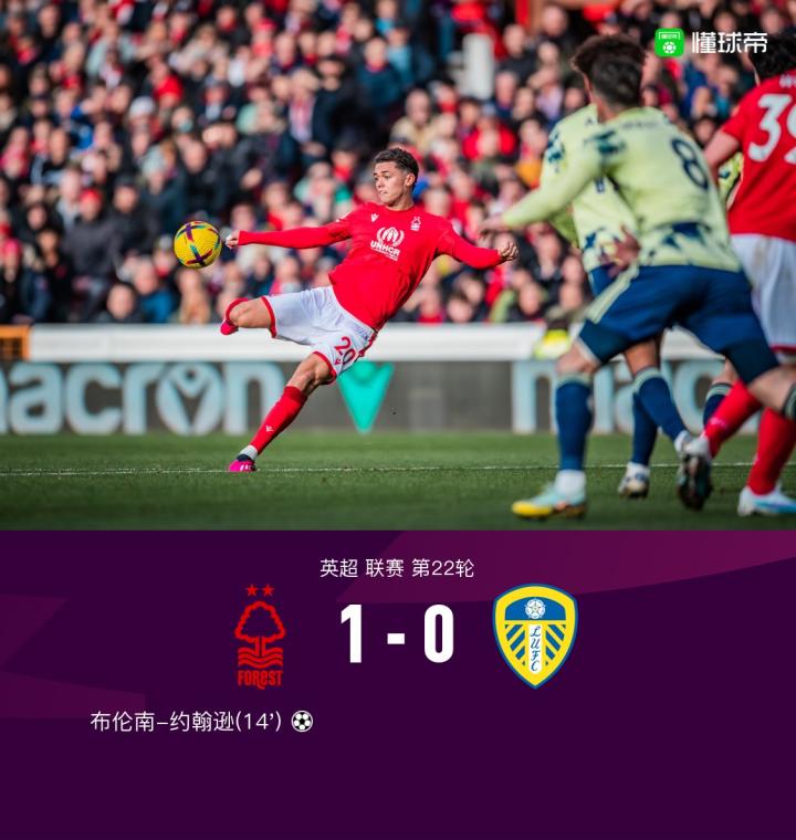 扫描下载懂球帝首页>动态> 森林1-0利兹联送对手6轮不胜,约翰逊制胜球,纳瓦斯屡扑救