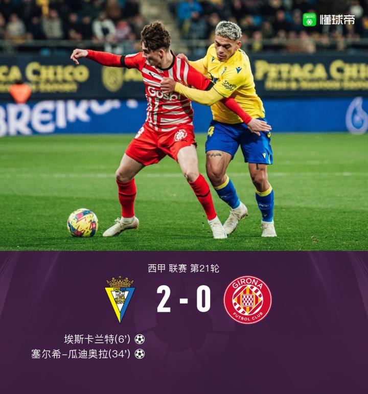 扫描下载懂球帝首页>动态> 加的斯2-0赫罗纳,埃斯卡兰特、塞尔希-瓜迪奥拉破门