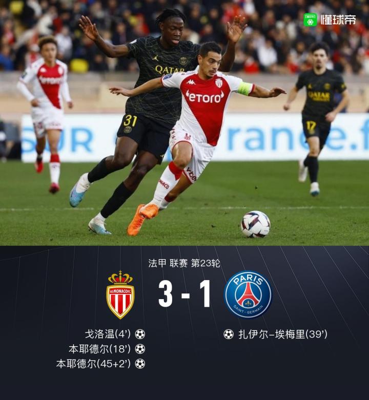 扫描下载懂球帝首页>动态> 巴黎1-3摩纳哥,埃梅里破门,多纳鲁马救险,本耶德尔2射1传
