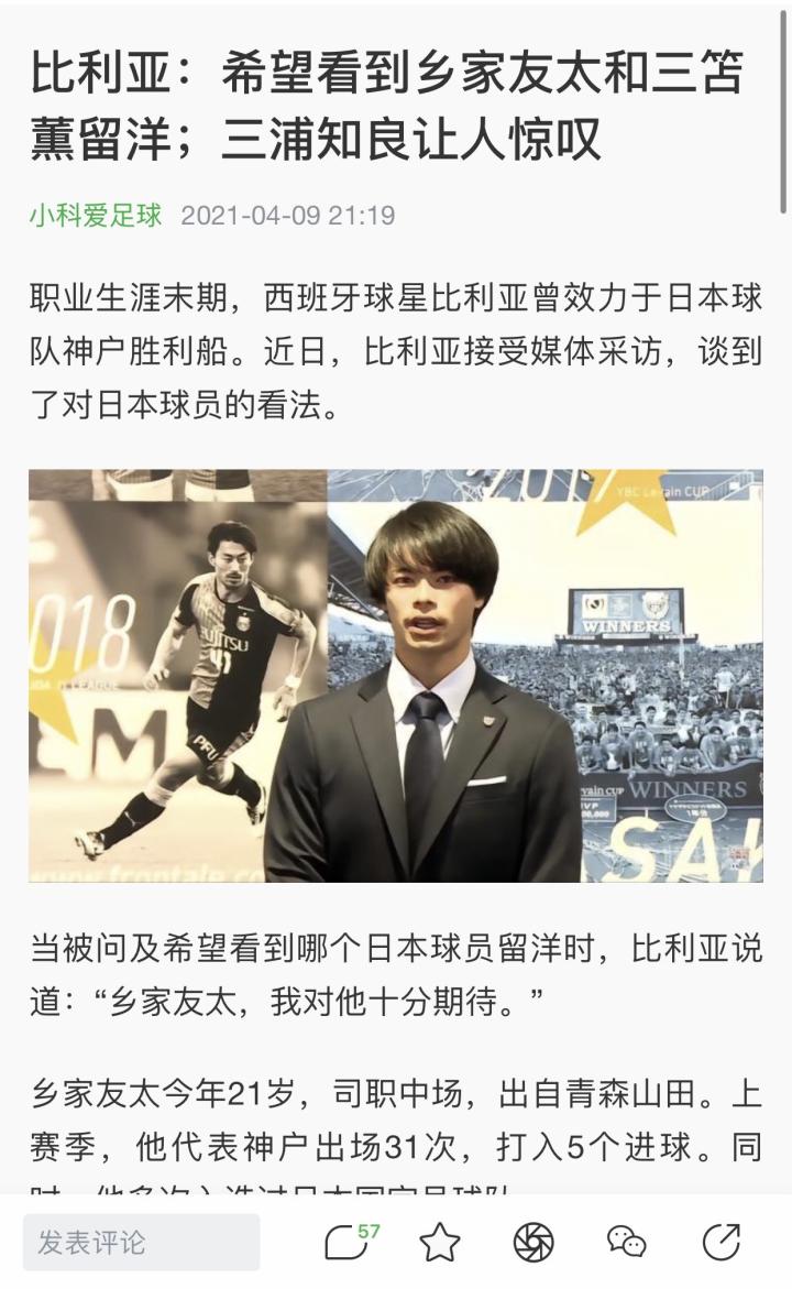 懂球帝首页>动态> 懂球号> 突然看到比利亚2021年的时候评价三苫薰,眼光还...