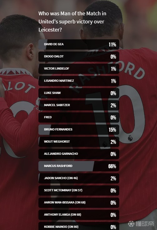 扫描下载懂球帝首页>动态> 毫无悬念!拉什福德连续第三场当选曼联队内最佳球员