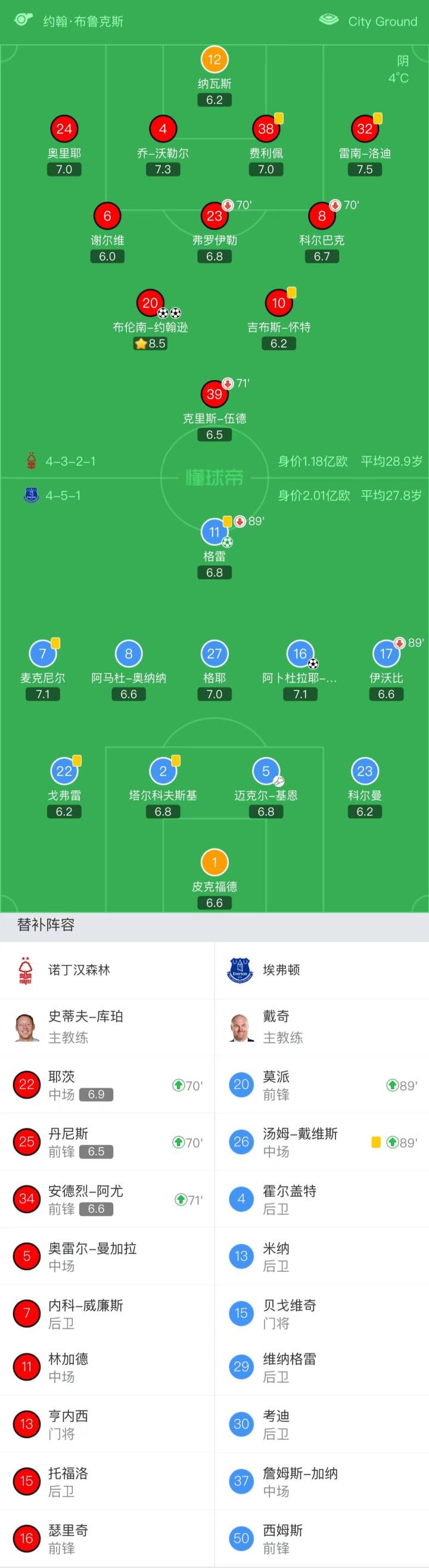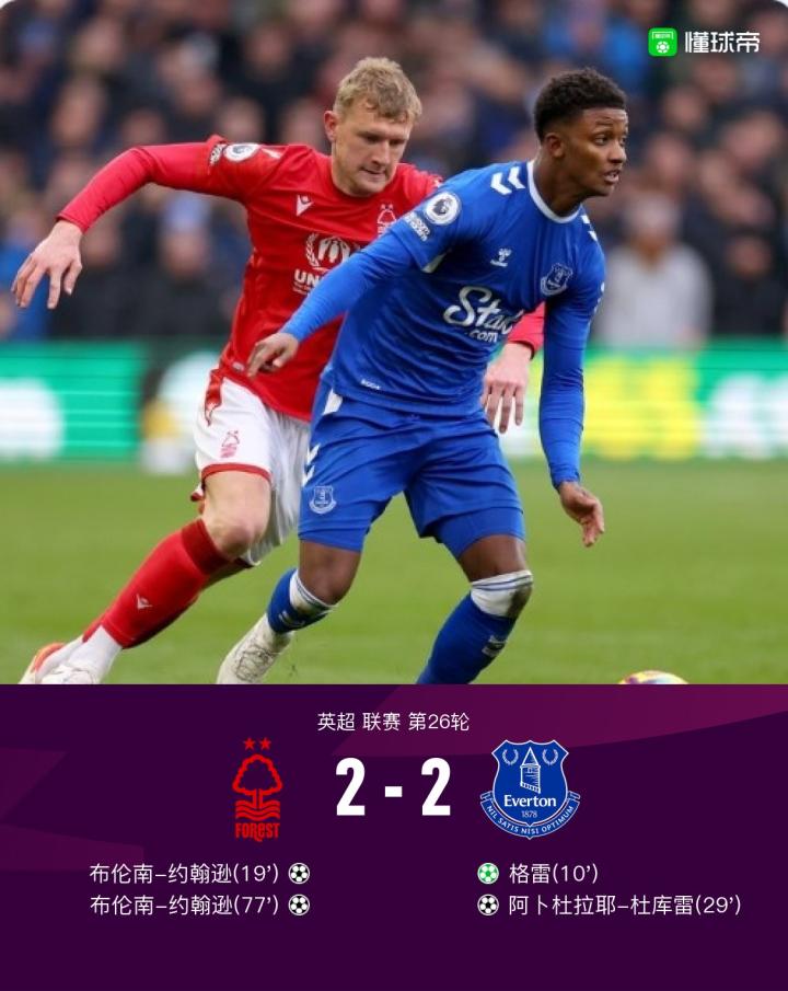 扫描下载懂球帝首页>动态> 诺丁汉森林2-2埃弗顿,布伦南-约翰逊双响,格雷点射建功