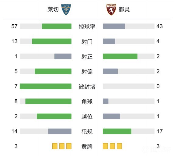莱切首发:30-法尔科内、17-让德雷、6-巴斯基罗托、93-乌姆蒂蒂、25-加洛、29-布兰、42-赫尤尔曼德、16-霍安-冈萨雷斯、27-埃斯佩托、77-塞赛、11-迪弗朗西斯科