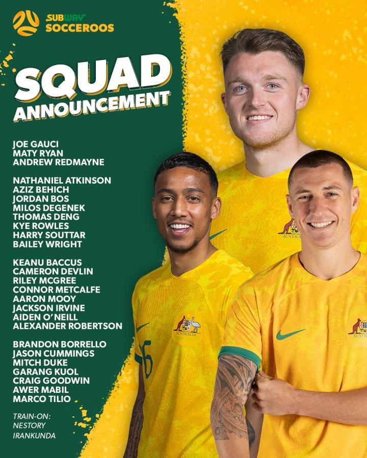 扫描下载懂球帝首页>动态> 澳大利亚大名单:苏塔、穆伊领衔;17岁小将伊兰昆达参与陪练