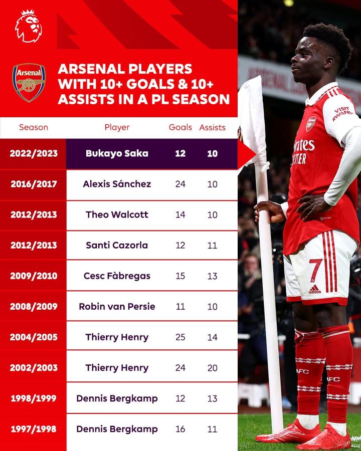 扫描下载懂球帝首页>动态> 懂球号> 单赛季英超进球助攻均上双的阿森纳球员