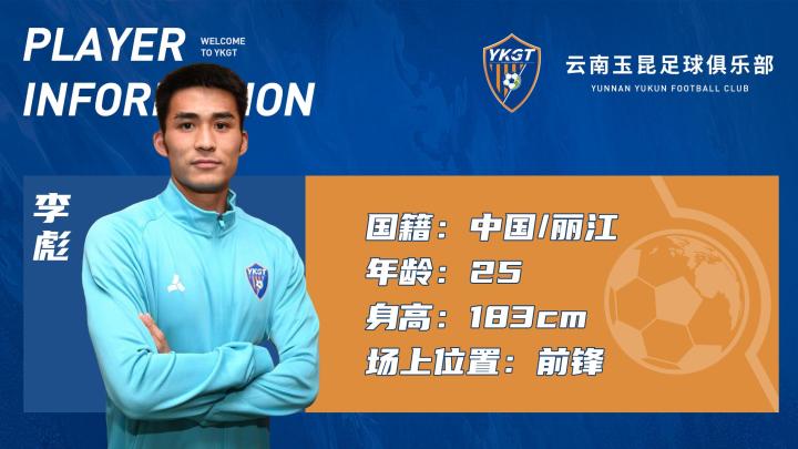 3月24日中午,中乙升班马云南玉昆足球俱乐部官方发布公告称,出生于云南丽江的纳西族球员李彪正式加盟球队,新赛季将代表云南玉昆征战中乙联赛。