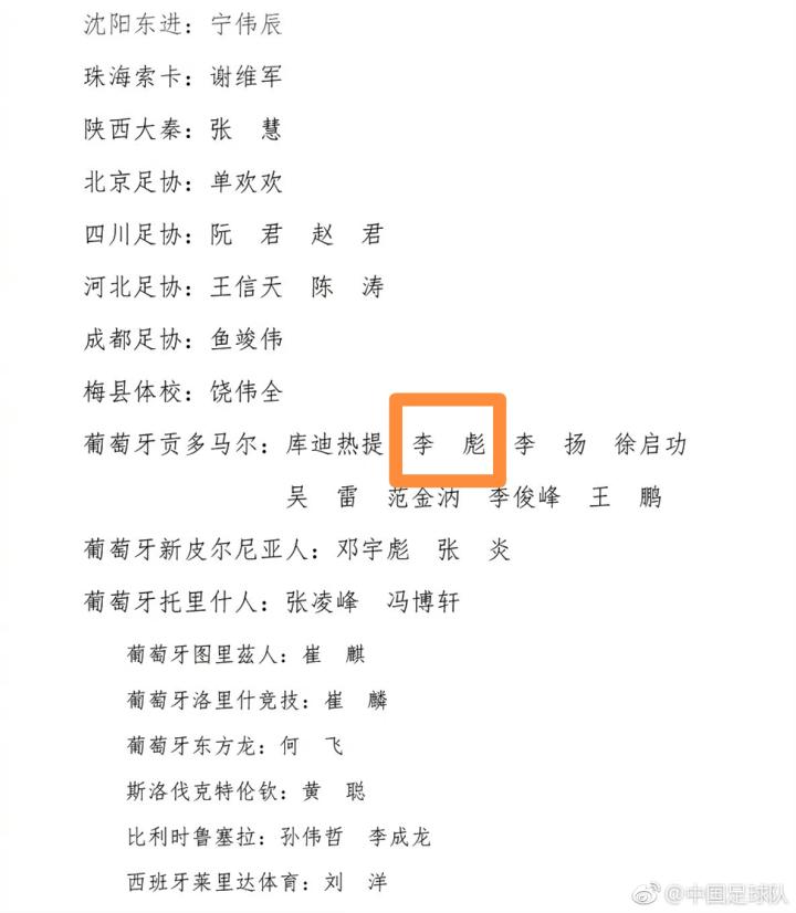 2016年,李彪入选中国U19国青队,并在当时的教学赛中攻破了贡多马尔U19梯队的球门。