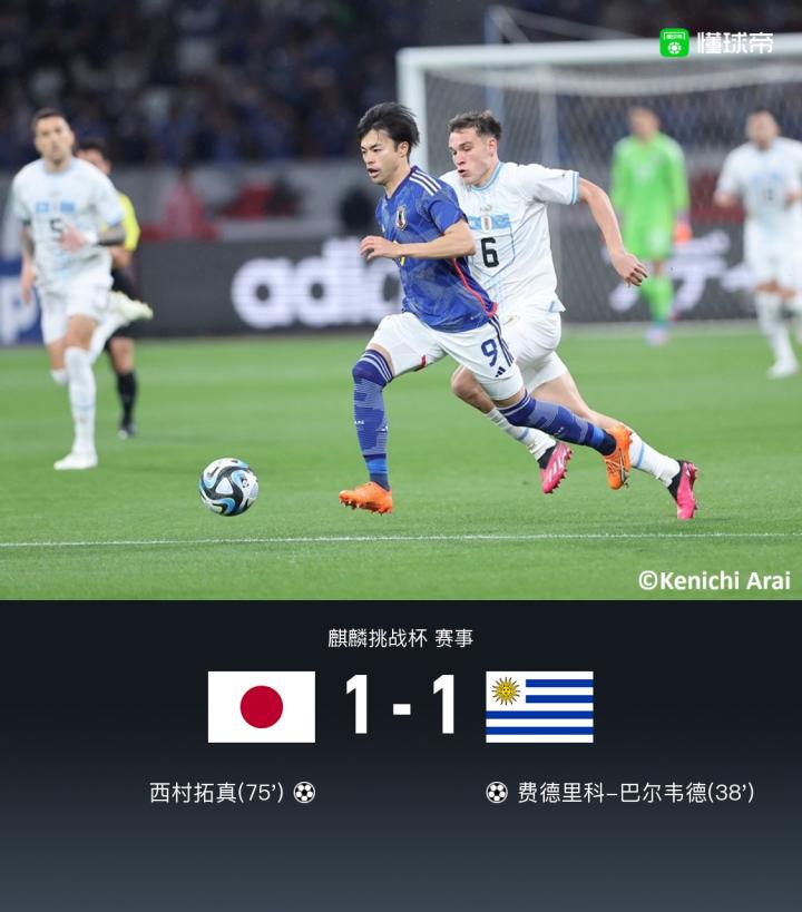 扫描下载懂球帝首页>动态> 日本1-1乌拉圭,巴尔韦德破门,伊东纯也助攻西村拓真扳平