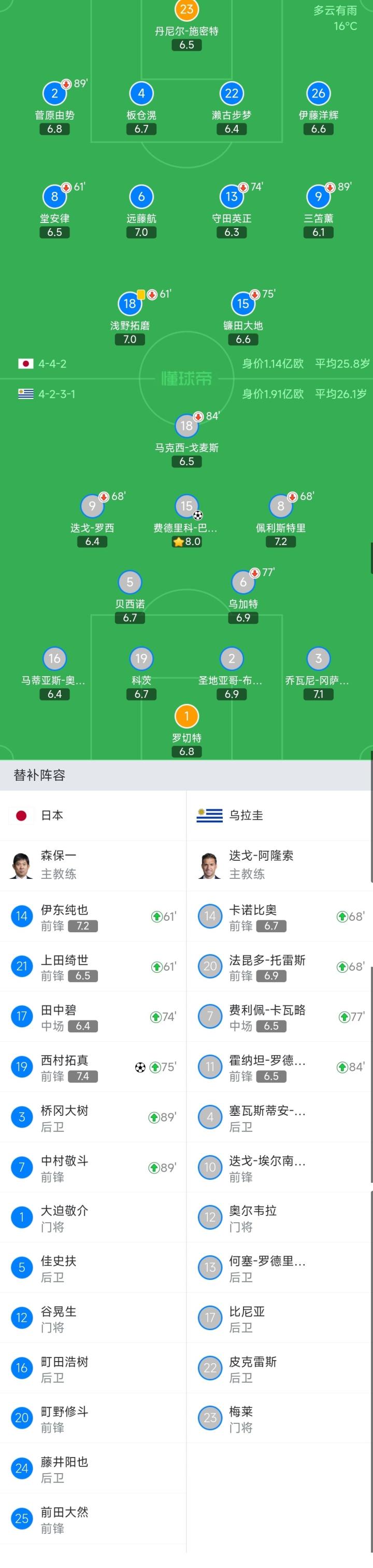金球在缺乏后场和前场大将的情况下还能逼平日本,乌拉圭🐮🍺!