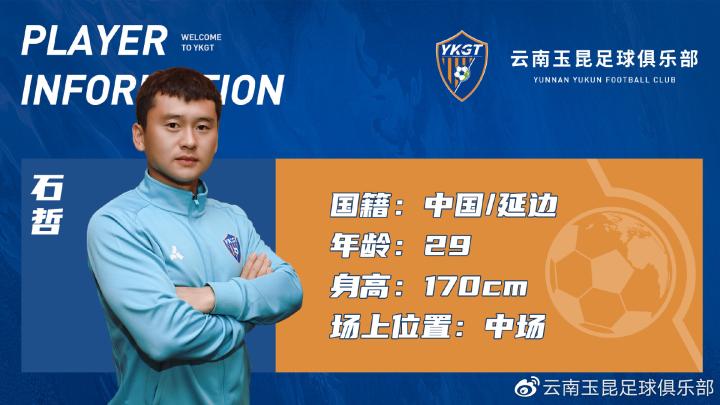 其中,29岁的石哲,司职中场,可胜任场上多个位置。他出自家乡球队延边长白虎,此前的职业生涯主要在青岛队效力,共陪伴青岛队征战了5个赛季中甲、1个赛季中超,是球队冲超的功臣之一。2020赛季,石哲迎来中超首秀。2021赛季,他加盟中甲球队苏州东吴,并在那里效力了2个赛季。在2022赛季中甲联赛中,他为苏州东吴出战15场,其中首发12场,斩获1个进球,1次助攻。目前,石哲在各级别联赛出场185次,可谓经验丰富。此番加盟云南玉昆,他将开启新的绿茵生涯。