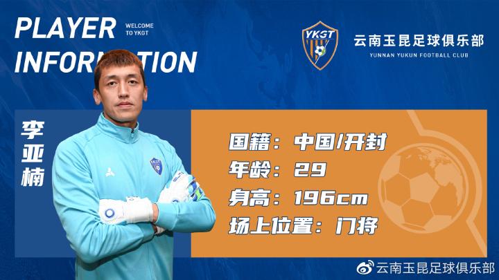 3月28日,中乙新军云南玉昆足球俱乐部官方发布公告称,石哲、李亚楠正式加盟,新赛季将代表球队征战中乙联赛。