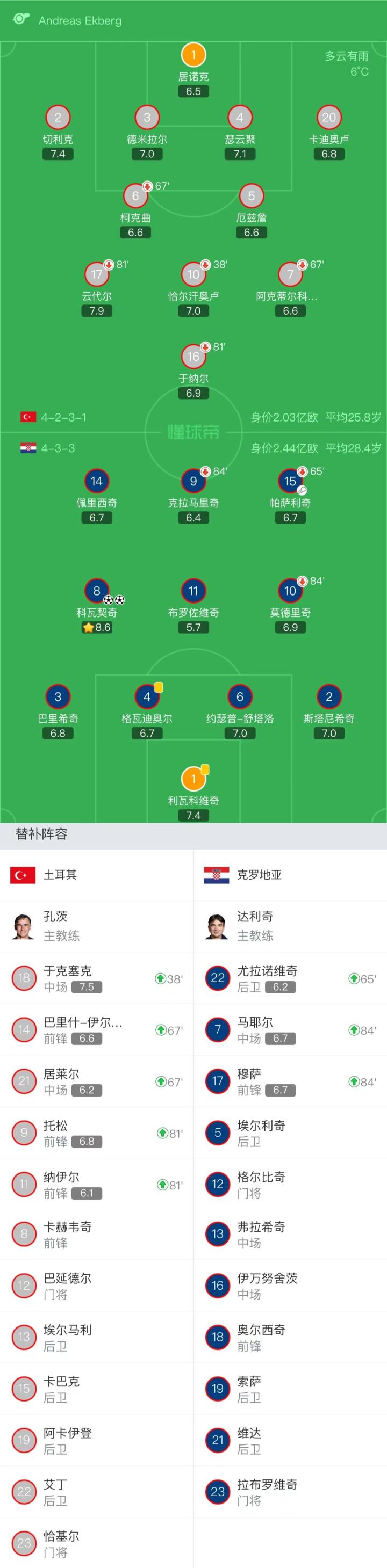 2.达利奇采访说奥尔西奇现在俱乐部情况很担忧,不过召他进来会给他机会的。结果这场佩里西奇受伤也不是换他上感觉有点可惜。毕竟他季军赛踢得蛮好的,我当时还可惜用他的时间太少也太晚了。我个人对他有点期待,感觉用好他会是解决现在克罗地亚锋无力的答案之一。