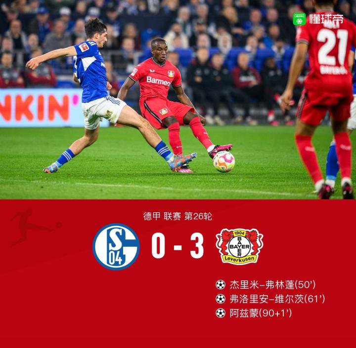 扫描下载懂球帝首页>动态> 沙尔克0-3勒沃库森联赛8轮不败遭终结,迪亚比助攻双响