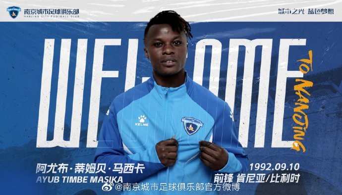经与球员本人协商一致,即日起球员阿尤布-蒂姆贝-马西卡(Ayub Timbe Masika)正式加盟南京城市足球俱乐部。