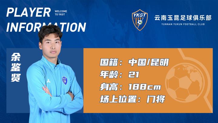 余鉴贤,司职门将,云南昆明人,出自云南青训。2018年加入河北足球俱乐部梯队,代表球队征战青超联赛、潍坊杯等赛事。2021年加入昆山足球俱乐部预备队,作为主力门将代表昆山参加中国足协U21联赛。2022年初余鉴贤升入一线队,2022年跟随昆山队夺得中甲冠军。
