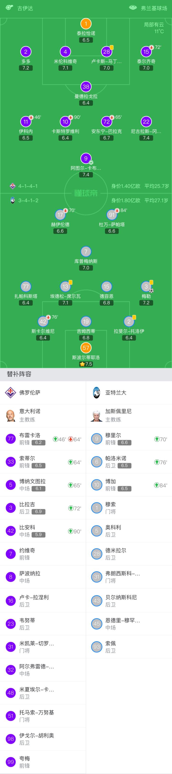 扫描下载懂球帝首页>动态> 佛罗伦萨1-1亚特兰大14场不败,梅勒破门,卡布拉尔点射扳平