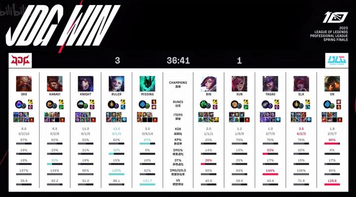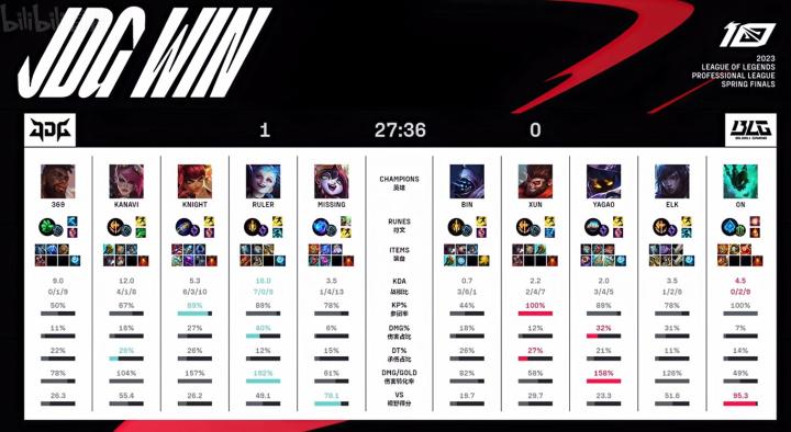 JDG首发:369、Kanavi、knight、Ruler、Missing