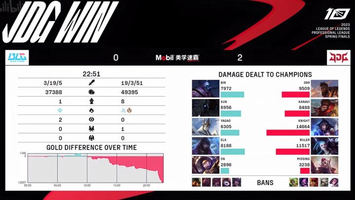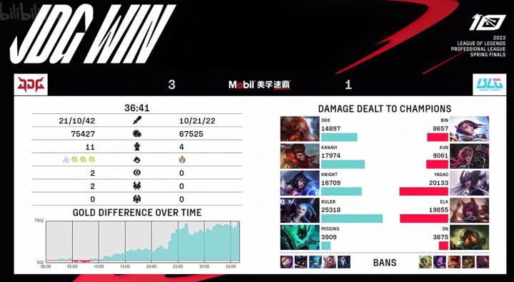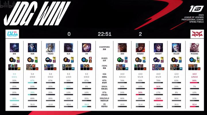 英雄联盟2023LPL春季赛总决赛(BO5)JDG vs BLG,JDG 3-1 战胜BLG,JDG成功卫冕冠军成功。