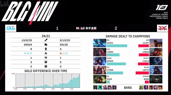 第34分钟,BLG携带大龙推进打出0换5,成功扳回一分。