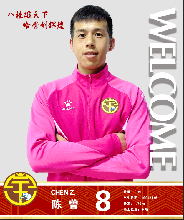 陈曾,1994年4月6日出生于广西南宁,身高1.72m,司职中场,曾在葡萄牙留洋效力马夫拉,随后在沧州雄狮、沈阳东进和淄博蹴鞠等球队效力。2021赛季,以租借形式加盟广西平果哈嘹,帮助球队冲甲成功。2022赛季,代表中甲淄博蹴鞠出战11场比赛,5次首发。