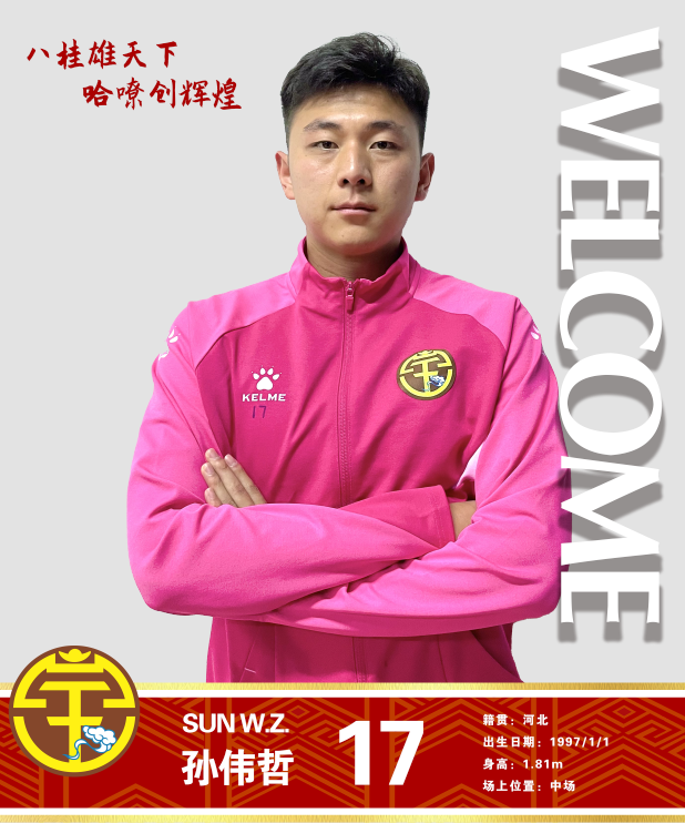 孙伟哲,1997年1月1日出生于河北,身高181cm,司职中场。人和青训出身,曾留洋比利时,入选过U21国足,2021年加盟淄博蹴鞠,上赛季在淄博蹴鞠出场26次。
