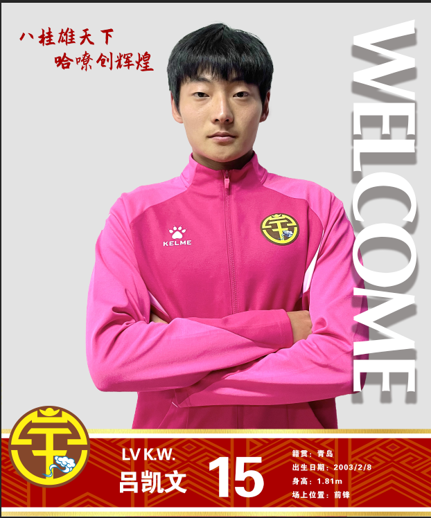 吕凯文,2003年2月8日出生于青岛,身高181cm,吕凯文司职前锋,原为美籍华人,去年5月入籍中国。恒大青训出身,2022年加盟江西黑马青年,在江西黑马青年出场4次,打进2球。今年广西的元宵杯赛事,吕凯文代表广西东兴独进两球,帮助东兴击败越南芒街。
