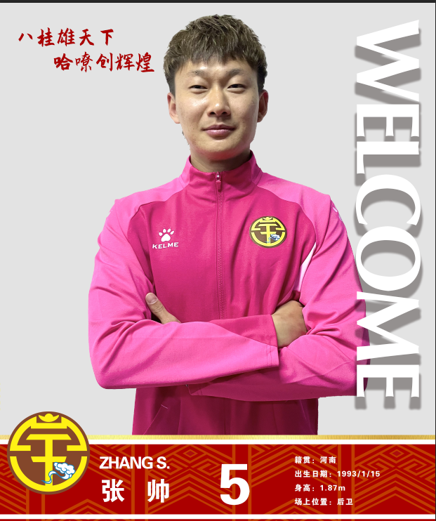 张帅,1993年1月15日出生于河南,身高187CM,司职后卫。河南建业青训出身,2013年进入河南一线队,2017年加盟石家庄永昌,2020年转会北京北体大,2022年下半年加盟淄博蹴鞠。上赛季在淄博蹴鞠出场17次,打进1球。